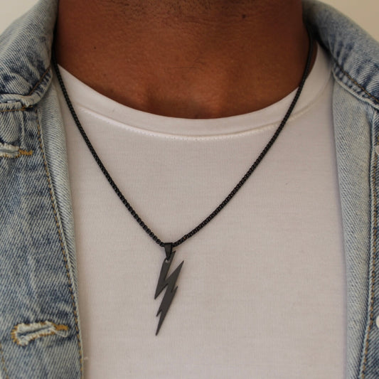 Lightning Bolt Black Pendant Necklace - Men