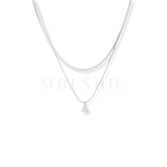 Dainty Drop Layered Necklace Silver
