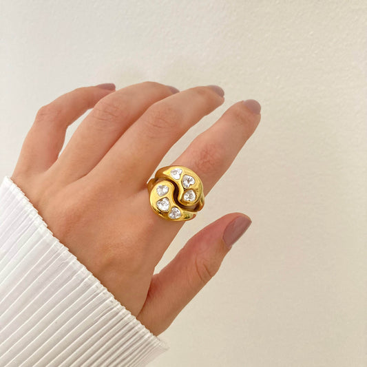 Chunky Zircon Hearts Ring