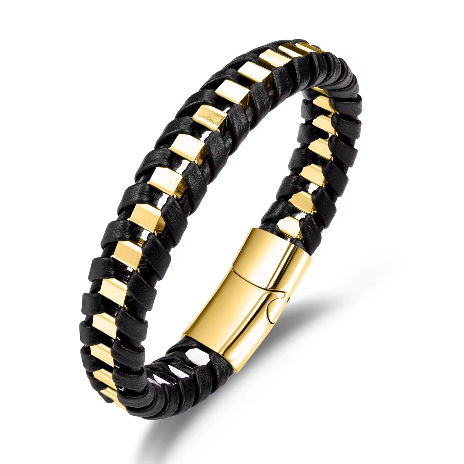 Braided Gold Leather Bracelet- Men
