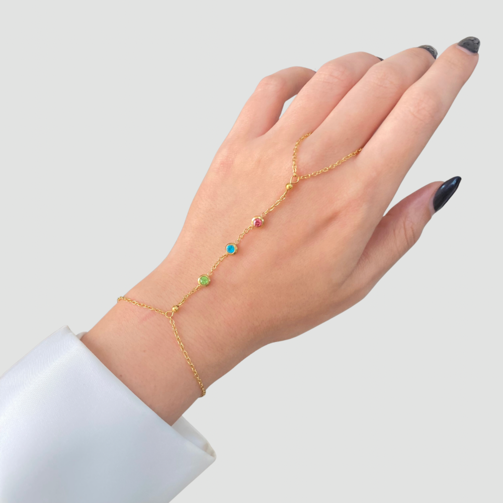 Crafted with precision, this hand chain features a robust 18K gold-plated construction that resists tarnishing and water damage, making it ideal for everyday wear. The adjustable design accommodates wrist sizes from 16 to 21 centimeters, ensuring a perfect fit for any wearer. Durable and refined, it combines practical durability with timeless elegance.