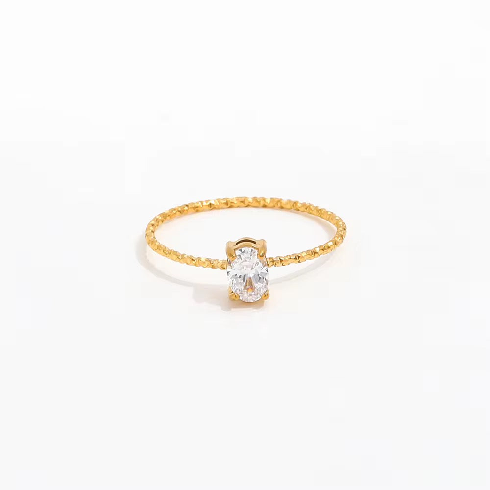 Waterproof 18k gold-plated oval solitaire ring that keeps its sparkle through anything.