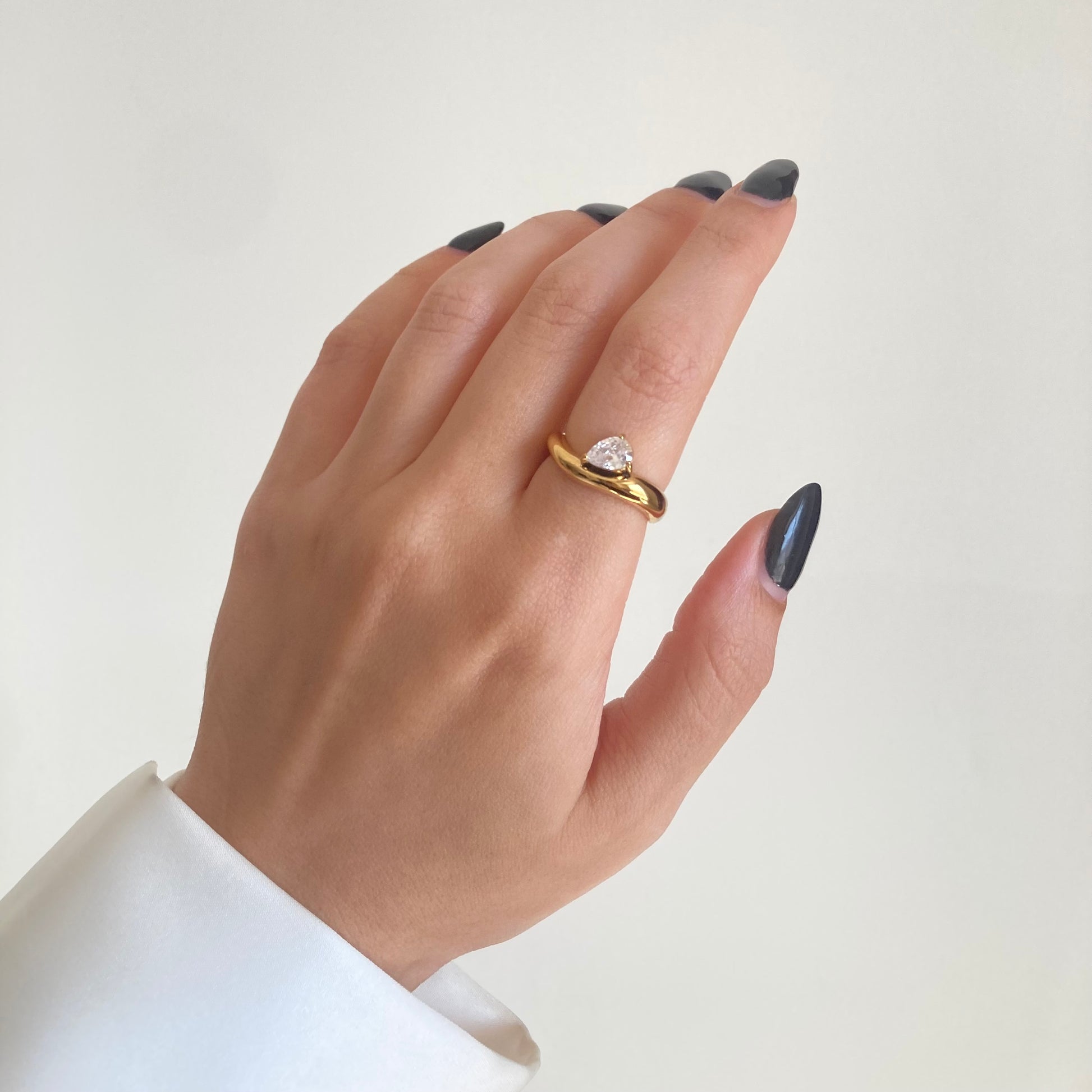 Waterproof and tarnish-free 18k gold-plated stainless steel ring that keeps its shine.