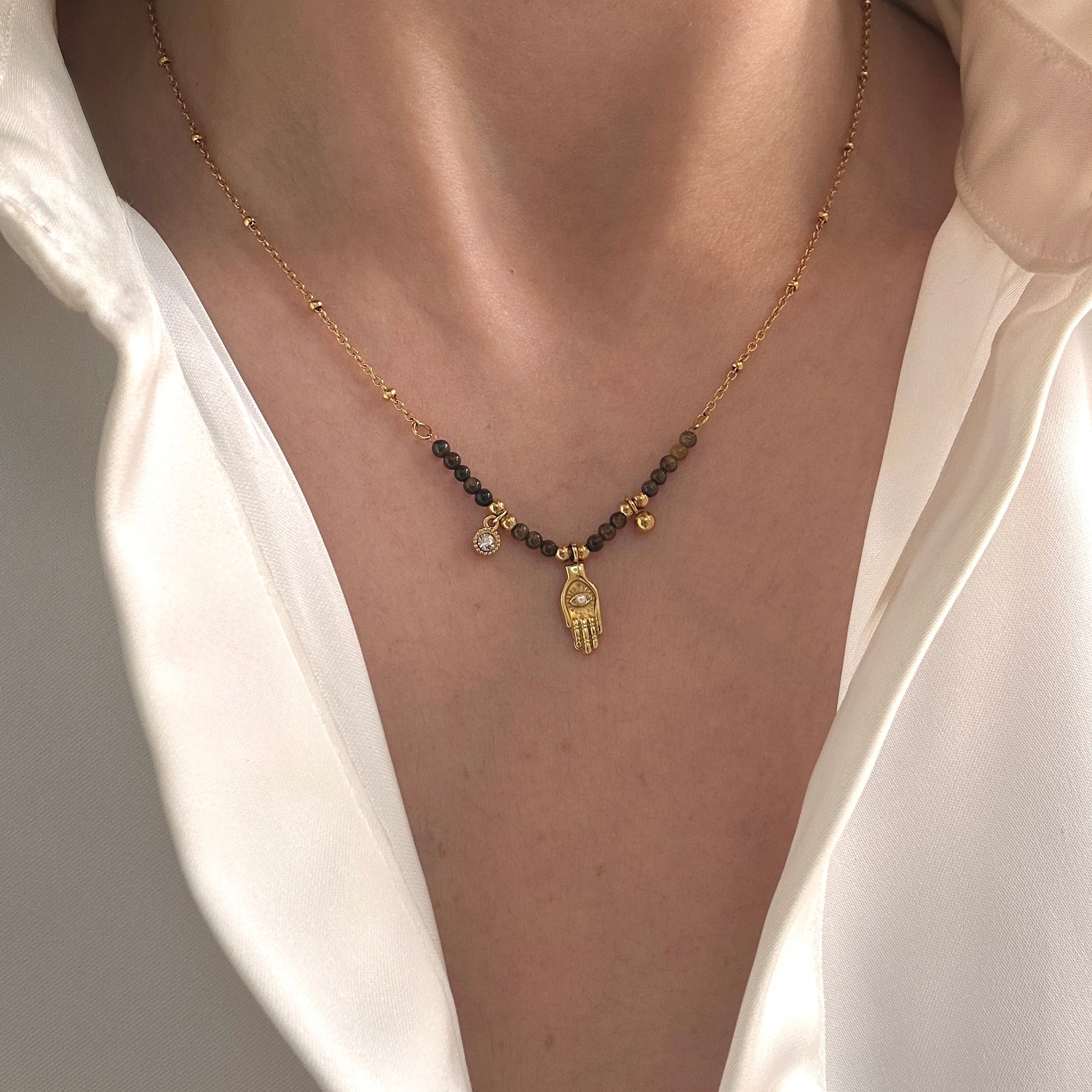 Tiger Eye Goddess Necklace in 18K gold plating - waterproof, tarnish-proof, and ready for anything. Adjustable 42cm + 5cm extension fits your vibe.